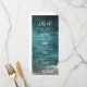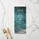 Det romska kusttemat låt oss äta bröllop-menyn har vackra, moody vattenfärgade, mousserande havsvåg och strandbakgrund, övertagna med snyggt och elegant, typsnittsdetaljer, modern och enkel, underbar för sandstrasbröllop, tropiskt destinationsbröllop, kusthav, temed bröllop. Visa alla matchande delar i samlingen.
