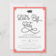 En modern inbjudan till en rolig sammankomst. Vår moderna Living Coral och navy Låt oss festa BBQ-jubileumsparty-inbjudan design har en liten och enkel grisillustration som kompletterar en vacker "Låt oss festa"-kaligrafi över årets trendiga färg living coral. På baksidan är bakgrundsfärgen i kontrasterande rökigt navyblått. Anpassa med din information med hjälp av de mallfält som tillhandahålls.