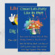Låt oss festa som om det vore 1969 Festinivitationen har psykedeliska bilder och text, inklusive en färgrik röd svamp med vita prickar omgiven av simulerad psykedelisk färgsprut och text i två olika färger, som alla kan anpassas med dina egna festsärdrag. Vi har, "Du är inbjuden till en groovy retro 60-tals fest"; Adressen, datum och tid följer, och den sista raden med text säger, "Retro Hippie Psykedelisk Klädsel Valfritt." På baksidan av kortet finns en leende hippie-emoticon som gör fredstecken med båda händerna, och tre rader med text som säger, "Som wow! Gräv det, man! (Dave kommer definitivt att vara här.)" Denna retro hippie psykedeliska festinbjudan är helt anpassningsbar, från bak