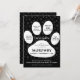 En kreativ hund-tematisk födelsedagsfestinbjudan med en stor tassdesign. Texten innehåller lekfulla fraser som "Låt oss festa" tillsammans med evenemangsinformation som datum, tid, plats och en notis om att ta med husdjur (kullbarn). Designen inbjuder gästerna att fira Murpheys speciella dag på ett roligt och festligt sätt.