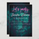 Låt oss festa varmt rosa neon skript lövverk födel inbjudningar