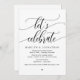Vacker modern svart kalligrafi, bröllopsflykt tillkännagivande, inbjudningskort (Låt oss fira). Detta är perfekt för din bröllopsmottagning och efterbröllopsfirande. Lägg till dina detaljer i matchande teckensnitt / bokstäver.