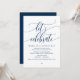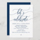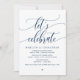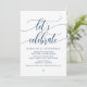 Vacker modern marinblå kalligrafi, bröllopsflyktmeddelande, inbjudningskort (Låt oss fira). Detta är perfekt för din bröllopsmottagning och efterbröllopsfirande. Lägg till dina detaljer i matchande teckensnitt / bokstäver.