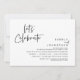 Modern svart skript-tema, bröllopsinbjudningskort för flykt (Låt oss fira). Det är perfekt för din bröllopsfest efter flykt / efterbröllopsfirande. Lägg till dina detaljer i matchande svart teckensnitt / bokstäver.