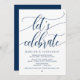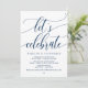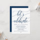 Vacker modern enkel marinblå kalligrafi, bröllopsannonsering, inbjudningskort (Låt oss fira). Detta är perfekt för din bröllopsfest och efterbröllopsfirande. Lägg till dina detaljer i matchande teckensnitt / bokstäver.