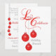 Helgdagfrunchinbjudan som presenterar delikat bokstäver som täckas i rött snöre, eleganta julprydnadar som täckas i rött snöre, och beställnings- partytext. Det härliga vintagesnöremotiv av att fläta samman stjärnor och blommor på julprydnadarna är som påminner om av det forntida hantverket av snöre-danande.