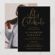 Denna eleganta svarta och gyllene examensfest-inbjudan med manuskript kan anpassas med dina festdetaljer och foto på baksidan. Designad av Thisisnotme©