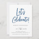 Låt oss Fira Modern Blue Script Birthday Inbjudningar
