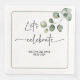 Låt oss fira med Anpassade namn och datera modern och minimalistisk papper napkin.Texten "Låt oss fira" finns i ett modernt typsnitt med glyf. Dekalen har ett smalt grått Ram runt texten med ett eukalyptus gren hängande från hörnet. Använda detta som en del av Bröllop-samlingen eller ändra texten till tillfälle, t.ex. Födelsedag, årsdag eller annat. Lägg till i din e-post eller i en presentväska när din gäst kommer till Reseption eller party. Om du vill anpassa ytterligare (teckensnittstyp, Storlek och färg) kan du göra detta inuti Verktyg. Finns i olika storlekar, Lunch, Middag eller cocsvans.