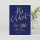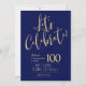Låt oss Firate Navy Blue Guld 100 Birthday Inbjudningar