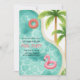 Skapa vågor med denna söta akvarell poolparty-födelsedagsinbjudan! Med en handmålad kurvig simbassäng, tropiska palmer, rosa flamingo-flottar och mjuka pastellfärgade akvarellränder är denna design perfekt för en rolig sommarfirande. Personifiera med ditt barns namn, festdatum, tid och adress för en unik inbjudan.