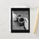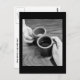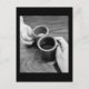Det här vykortet innehåller ett svartvitt foto av kaffe koppar med text på baksidan, ett underbart sätt att skicka en snabbanteckning för att ha en kopp med en vän.
