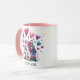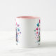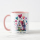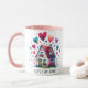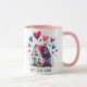 Hemma med vårt "Låt oss stanna hemma" mugg, som på ett vackert sätt illustreras med ett quaint hus omgivet av vibrerande, flytande hjärtan.