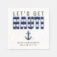 Blå och vit strimlad "låt oss få nauti"-blöjor för en bachelorette-fest. Anpassa den med din egen text.