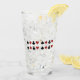 Detta dricka exponeringsglas är perfekt för någon som tycker om kortpartyn eller precis en vänlig lek av kort. Det har text som något att säga "låter oss leka kort". Det har också en grafisk design av spadar, hjärtor, diamanter och klubbar. Du kan ändra texten, om du gillar. Andra sidan av exponeringsglaset har en dubbla att ro av kortsymboler. En rolig design