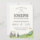 Inbjudan dina gäster till en roligt "parte" med den här charmerande och snyggt guldmatade födelsedagsinbjudan. Perfekt för en liten pojkes fjärde födelsedag, den här designen har en ren layout med den lekande rubriken "Låt oss Par-Tee!" och korsade golfklubbar. Grund i inbjudan är försedd med en vacker vattenfärgad illustration av en golfbana, komplett med en golfvagn, en säck med klubbar och en grönt. Den klassiska typografin och den milda paletten färg gör detta till ett sofistikerat men roligt val för firande. Alla detaljer, inklusive information om namn, ålder, datum, tid, adress och OSA, är lätt att anpassade till perfekt kostym för din händelse.