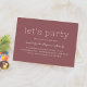 En djärv och festlig inbjudan till julfesten. Med "låt's party" i modern typografi är detta en perfekt för att ange tonen för en roligt och ett minnesvärt evenemang. Uppgifterna skrivs ut i chic, med versaler och namn i handskriftsskript i stil. Den vita texten mot en fuktig röd bakgrund gör att inbjudan är här, medan den omvända sidan har en mer traditionell, handmålad vattenfärg mönster av vintergrön, bär och röda kvistar. Vare sig du är värd för en cocktail party, kakaväxel eller en mysigt familj, så är den här inbjudan perfekt för att lägga till en liten bit helgdag och en modern fläck i firande! Den här designen finns också som en digital nedladdning av julfester. Kolla in samlingen för matchande artiklar eller bläddra i vår butik för mer unika inbjudningsutformningar för julfest.