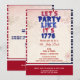 En modern typografifest för vänner, kära och familj från Flagga i USA. Fira Independence day 4:e juli Bash med rött, blått och vitt i stil. Utformningsmallen har modern kalligrafi för "Låt oss PARTY LIKE IT's 1776" på en shabby chic-pastellbaksida med rosa med gräns. Omvänd sida har en matchande mönster. Texten kan enkelt anpassas.