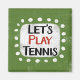 "Låt oss Spela upp tennis" är en söt textdesign med en vit accentform omgiven av vita texturerade vita prickar.