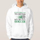 This hoodie is much better than I expected. top quality, true sizing, and really comfy. I was a bit worried that the lettering would be too dark on the navy blue hoodie, but once it arrived it was perfect. Easy to see the words, and the quality of the wording is fabulous. I will be buying more hoodies in future
