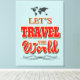 Vintage stil "Låt oss resa världen" illustration med världskartan dekoration