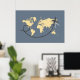 Låt oss reseillustration med världskarta och flygplansbaserad dekoration på blå bakgrund för alla som tycker om att resa.
