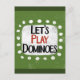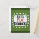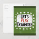 "Låt oss spela Domino" är en söt textdesign med en vit accentform omgiven av vita texturerade fantasifulla prickar.