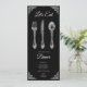 Svart middagsinbjudan med elegant med vintage-sked, gaffel och knivar-design - perfekt för sofistikerade händelser och specialtillfällen. Anpassa din inbjudan att ange en snyggt-ton för din insamling!