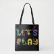 Lustigt påskriften "Låt oss play" gjord med minion brev.