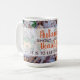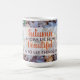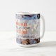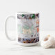 Mugg har ett vackert bild av fallna löv med små svampar av gult bland gräset i grönten. Anpassadet heter "Hösten visar oss hur vackert det är att låta sak gå"