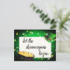 En fantastisk design av St. Patrick's Day firande med grönt gräns, en pott av guld, grönt hatt och pengar med texten "låt shenanigans börja". Redigera text på baksidan av vykortet om du vill anpassa den till din speciella dag.