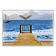 konstnärlig målning av en ocean med berg och segelbåtar med en örn som flyger förbi. En gångstig där man kan stå vakt, drömma önskar och släppa taget om bekymmer.