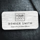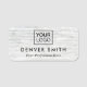 Namn bricka med namn, titel och anpassningsbar logotyp på en tryckt bakgrund av trämaterial. Du kan ändra typsnitt, flytta och ändra storlek på logotypen med designen verktyg.