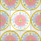 mönster inspirerat av Medelhavsländerna, skapat 1993 för en bordsmodell av china mönster, är dessa medallioner i blommigt centrerade inom varandra - konst av Kristie Hubler, mönster kallad "Light Passion", för en platta - färg blommönster, blått, grädde, rosa, gult