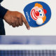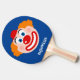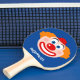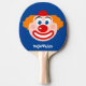 Lustigt clown ansikte ping pong-paddel för bord tennis. Personlig pingpongpaddel till bord tennis. Idéer för sportspelets gåva, för barn. Anpassningsbarnas bakgrund färg. Cute Mime teckning med röd hatt och orange hår.