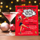 I julklapp är träd inte det enda sak som tänds i år! Lönsam inbjudan med en kvinna som har en cocktail och en pepparkaksgubbe cookie som bär en galen julhatt med roligt retro typsnitt. Underbar för en kakaväxling eller Cocktail-Hollday party.