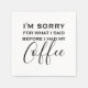 En modern, minimalistisk napkin-design i svartvitt, med ett lustigt kaffecitat, jag är ledsen för det jag sa innan jag fick min kaffe som en underbar idé om du tar hand om efterrätt och kaffe eller en roligt värdinna-gåva.