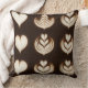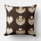 Elegant throw pillow featuring a seamless pattern of classic latte art designs including hearts, rosettas, and tulips in creamy white foam over a deep espresso background. High-contrast and minimalistic composition with refined coffee aesthetics, perfect for modern kitchens, cafés, and cozy interiors.