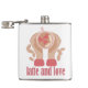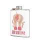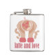 Latte och kärlek kopp, händer och kaffecitat fickplunta