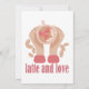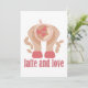 Latte och kärlek kopp, händer och kaffecitat inbjudningar