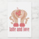 Latte och kärlek kopp, händer och kaffecitat mat etikett