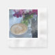 En mjuk latte med hjärtformade krämdesign. En enkel vas av söta ärtor på bord. Underbar för en social-sammankomst.