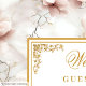 Lättfärgade dammiga rosa blommor guld bröllop gästböcker