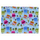 En roligt mönster av färgstarka, vita grodor och humlor.