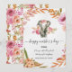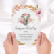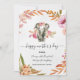 En underbar elefant i vattenfärgen stil omgiven av ömtåliga rosa blommor. Perfekt för Mors dag.