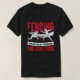 Fästningsdesign som visar: "Fenomenet gör nya vänner och sätter dem på spel." Det är bara höger för en Fencer som deltar i en Fencing Tournament.