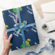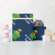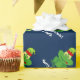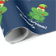 Lustigt grönt av den långa grodan som omsluter papper för barn. Tvätttode med julhatt-gåvan figurerar personlig med barnets namn. Tecknad av skal för små pojkar och flickor. Gör en illustration för barn till son, barnson, dotter, nyfödd bebis, barnbarn osv. Roligt skogsdjur. Anpassningsbar färg-bakgrund är marin blå.