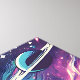 En vacker serenuppmjukande illustration av en blå och lila scen med en kvinna som medicinerar framför måne, planeter, stjärnor och galaxi till ge en fredlig vibe. Söt till ett meditationsrum eller en yogastudio.