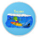 Vår roliga ödla surfande med hajar. Lägg till en egen text för att göra den speciell.