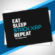 Kryptomemorandumdesign för fläkt i XRP-kryptovaluta som tror att XRP och XRP-huvudboken är framtiden för valuta- och betalningssystem i hela världen som använder sig av blockkedjeteknik. Utformningen "Eat Ssparack XRP Repeat" med citatet "Not Financial Advice".